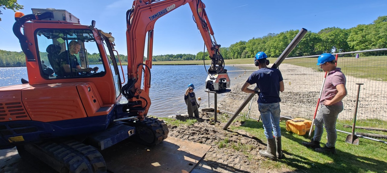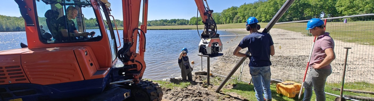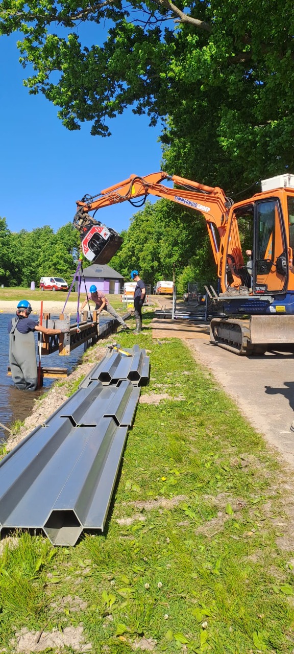 Sinds 7 mei is Timmerhuis Groep gestart met de vervanging van de oude houten beschoeiing bij de waterskibaan op Het Rutbeek.